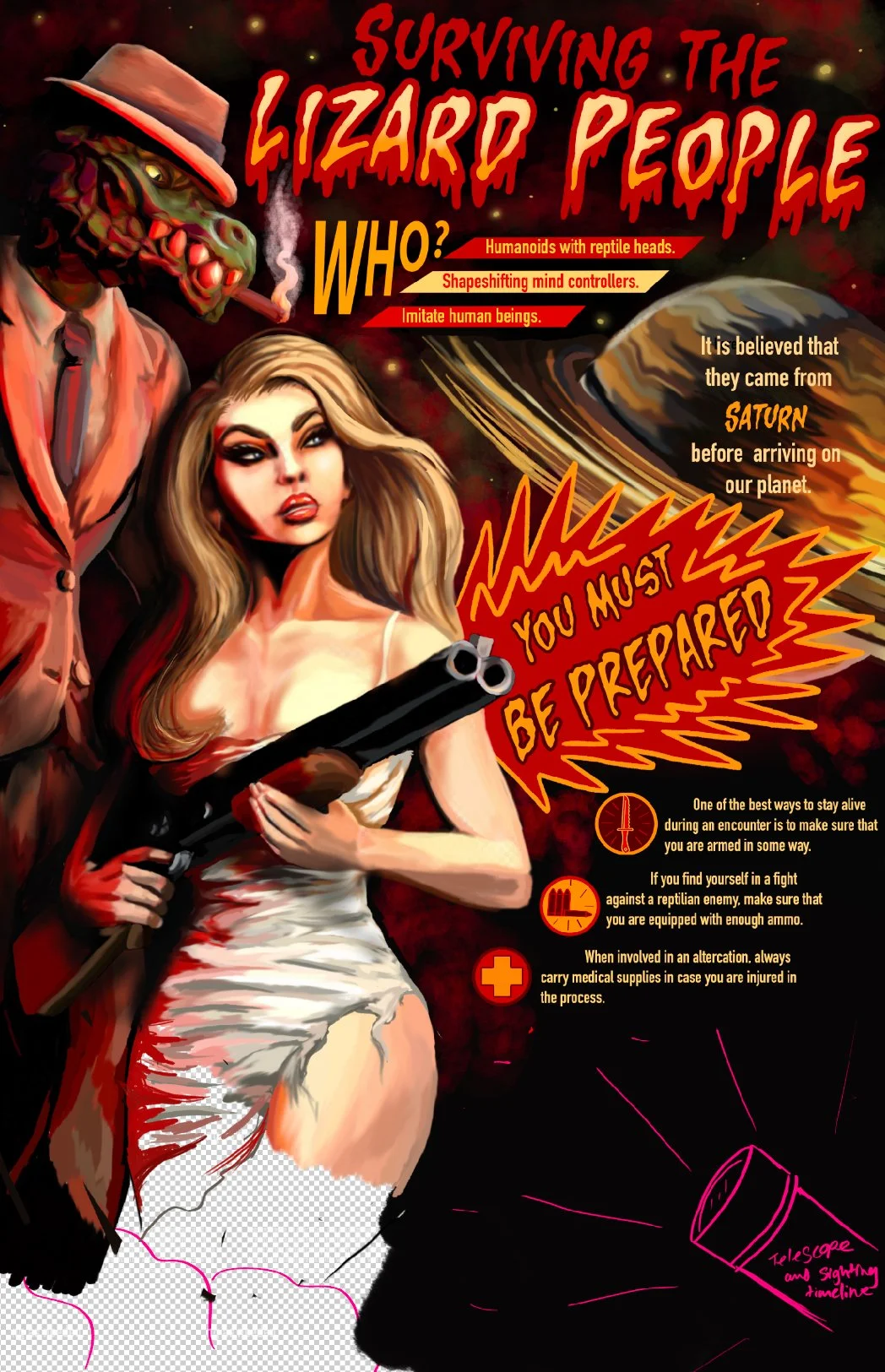 This piece was a project aimed at creating an infographic that showed some facts about the mythology of the Lizard people.